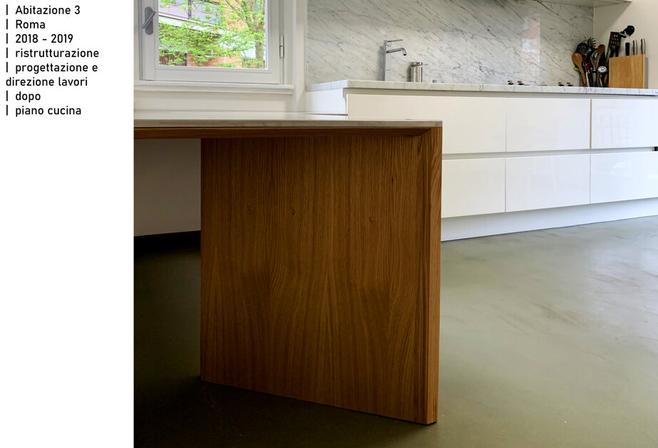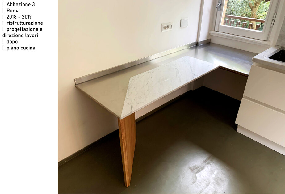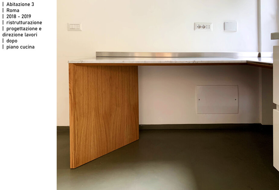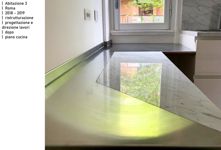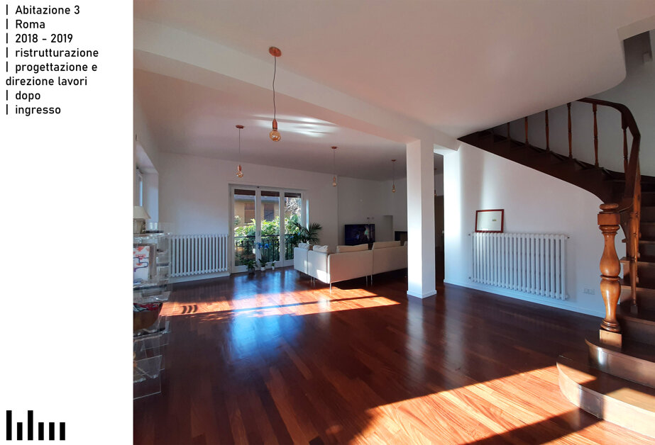Si tratta di un lavoro che parte da prima dell'acquisizione dell'immobile (una villetta unifamiliare di 200 mq con giardino nella zona nord di Roma), con un'analisi preventiva dei costi di risistemazione per verificare la fattibilità dell'acquisto. A questa fase è poi seguita la progettazione, la verifica dei preventivi delle imprese e la selezione dei materiali, per poi giungere alla fase di cantiere e alla sua gestione. A coronamento dell'intervento, vi è la progettazione e il confronto con gli artigiani per la realizzazione di elementi di arredo su misura.