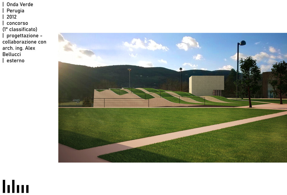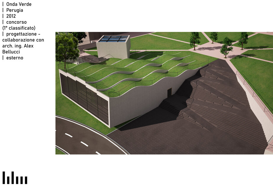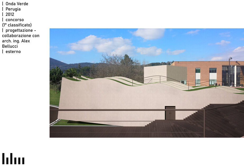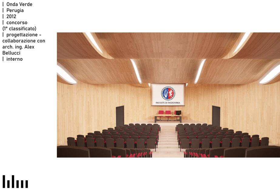 Il concorso ha ad oggetto la progettazione preliminare di un'aula magna per la Facoltà d'Ingegneria di Perugia. La proposta presentata, cui è stato assegnato il primo premio, prende spunto dal soffitto sinuoso dell'auditorium della biblioteca di Viipuri di Alvar Aalto, al contempo avvolgente e acusticamente efficiente. Tale sinuosità si rilegge anche esternamente, con strisce di erba che, in maniera sfalsata, emergono dal prato della piazza centrale verso le alture ad est. Ai lati del volume parzialmente ipogeo dell'aula magna, sono presenti un altro volume, più austero nonostante le dimensioni ridotte, e una scalinata sulla cui pendenza viene adagiata una rampa per persone a ridotta capacità motoria; il primo costituisce l'entrata principale all'edificio dal resto del polo di Ingegneria, mentre lungo la scala è presente un secondo ingresso per che viene dai parcheggi.